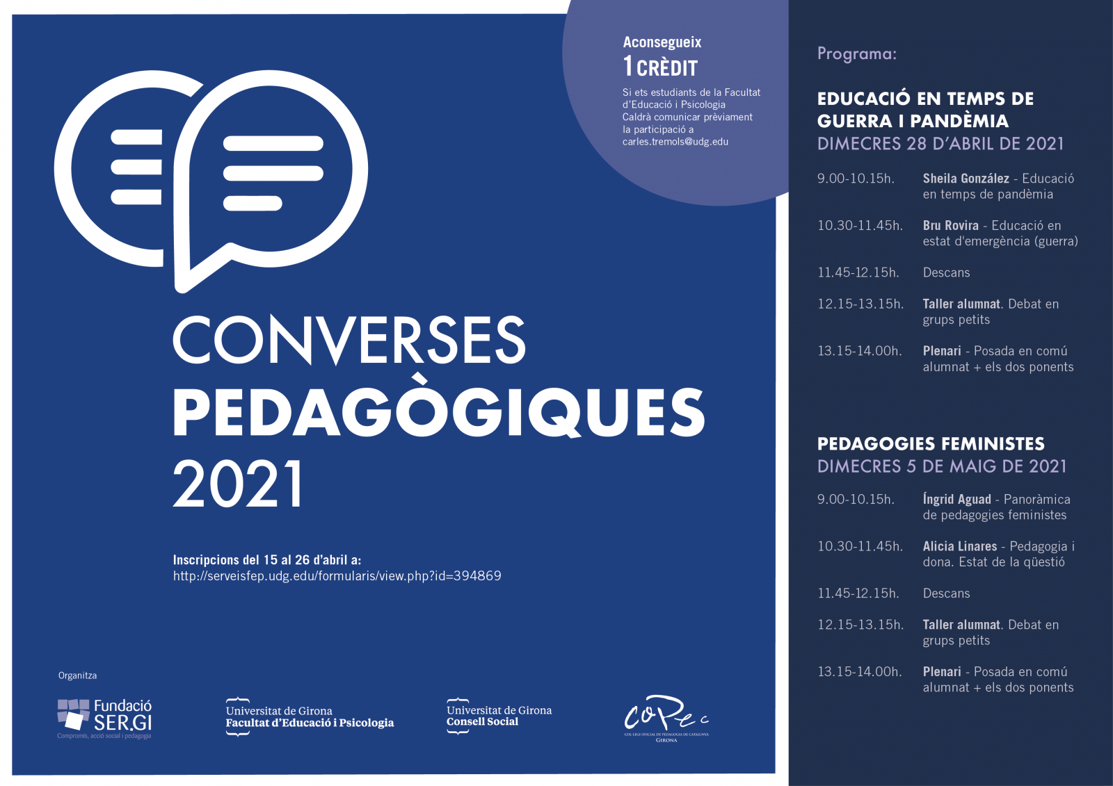 És un cicle organitzat des de la Facultat d’Educació i Psicologia de la Universitat de Girona, El Consell Social de la Udg, el Col·legi Oficial de Pedagogia de Catalunya (COPEC) i la Fundació SER.GI.