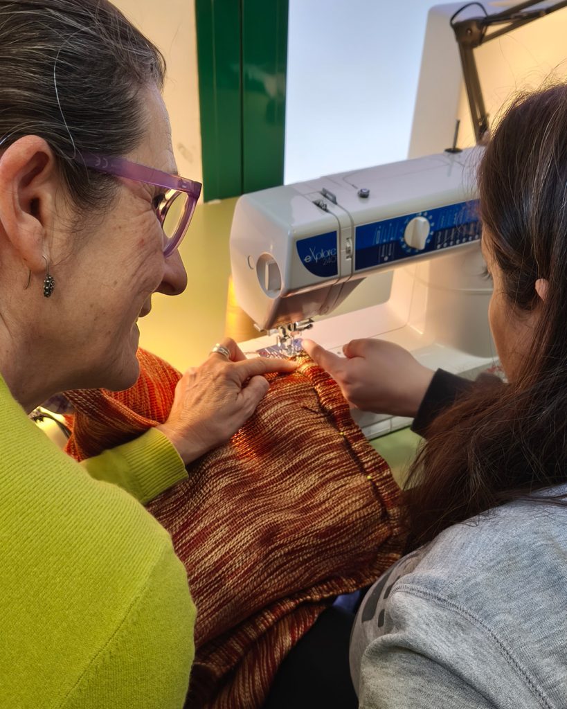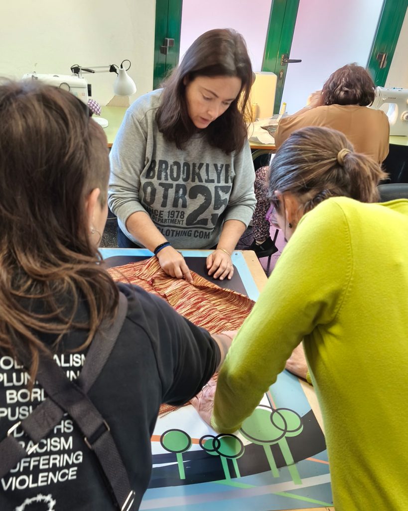 Les sessions han comptat amb l’acompanyament de Les Cosidores de Salt i de les professionals del projecte vinculat a la Comunalitat Som de Salt i l’Ateneu Popular de Salt, i han anat més enllà de l’aprenentatge tècnic. Hem pogut veure com el grup es consolidava com una petita comunitat basada en l’escolta activa, la cordialitat i el suport mutu, on cada dona ha trobat un espai segur per expressar-se i sentir-se acompanyada.