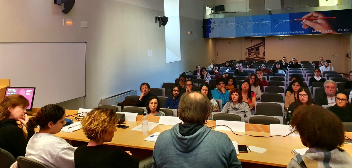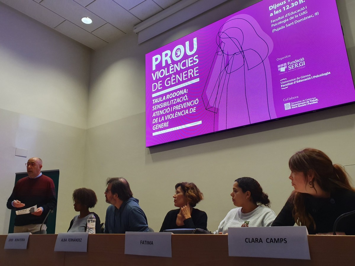 Unes 50 persones han participat aquest dijous 19 de desembre a la taula rodona “Prou violències de gènere” que s’ha realitzat a l’auditori de la Facultat d’Educació i Psicologia de la Universitat de Girona.